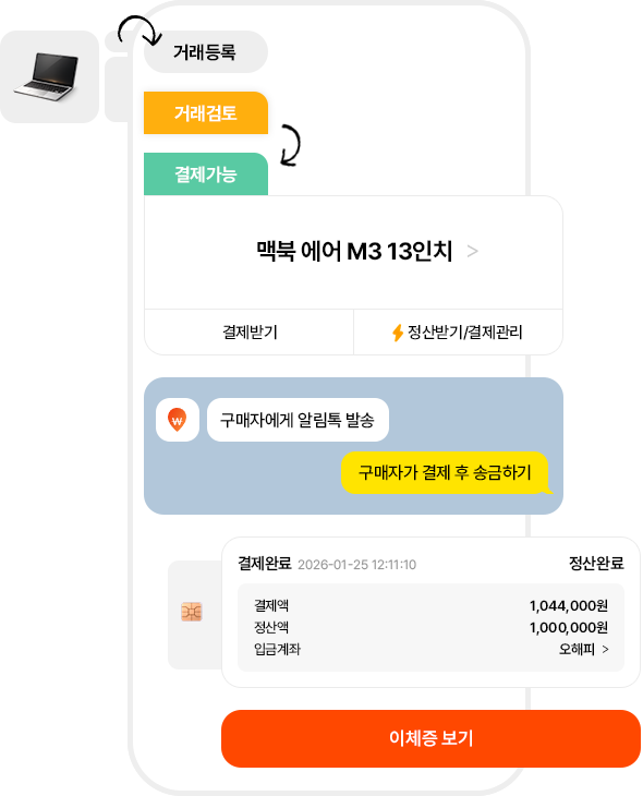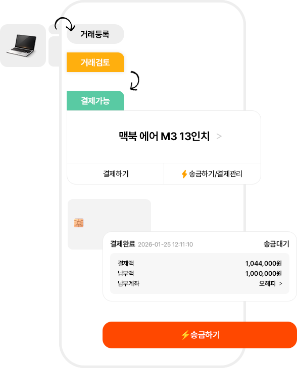 전자계약 거래는 - 구매자가 결제 후 [⚡️송금하기] 누르면 3초 만에 판매자 계좌로 즉시 송금돼요.