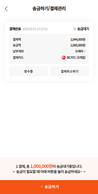 [⚡송금하기/결제관리] 화면의 [⚡️송금하기] 클릭 시 판매자 카톡으로 실시간 송금되며,