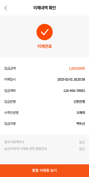판매자가 [입금받기] 누르면 3초 만에 이체 완료!